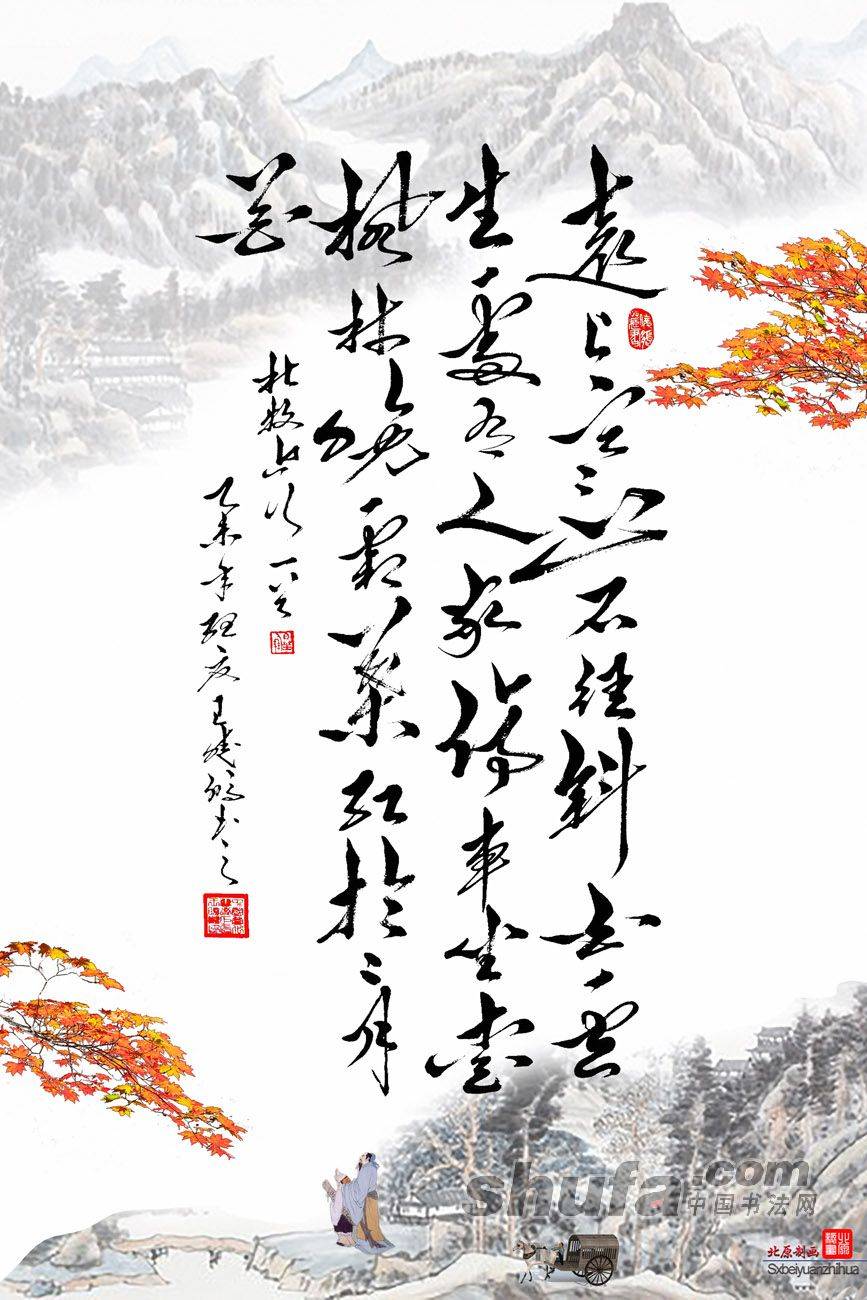 杜牧《山行》(竖式,配画)