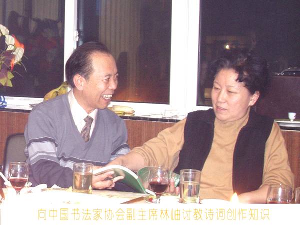 李耀宗向中国书协副主席林岫讨教诗词创作知识。