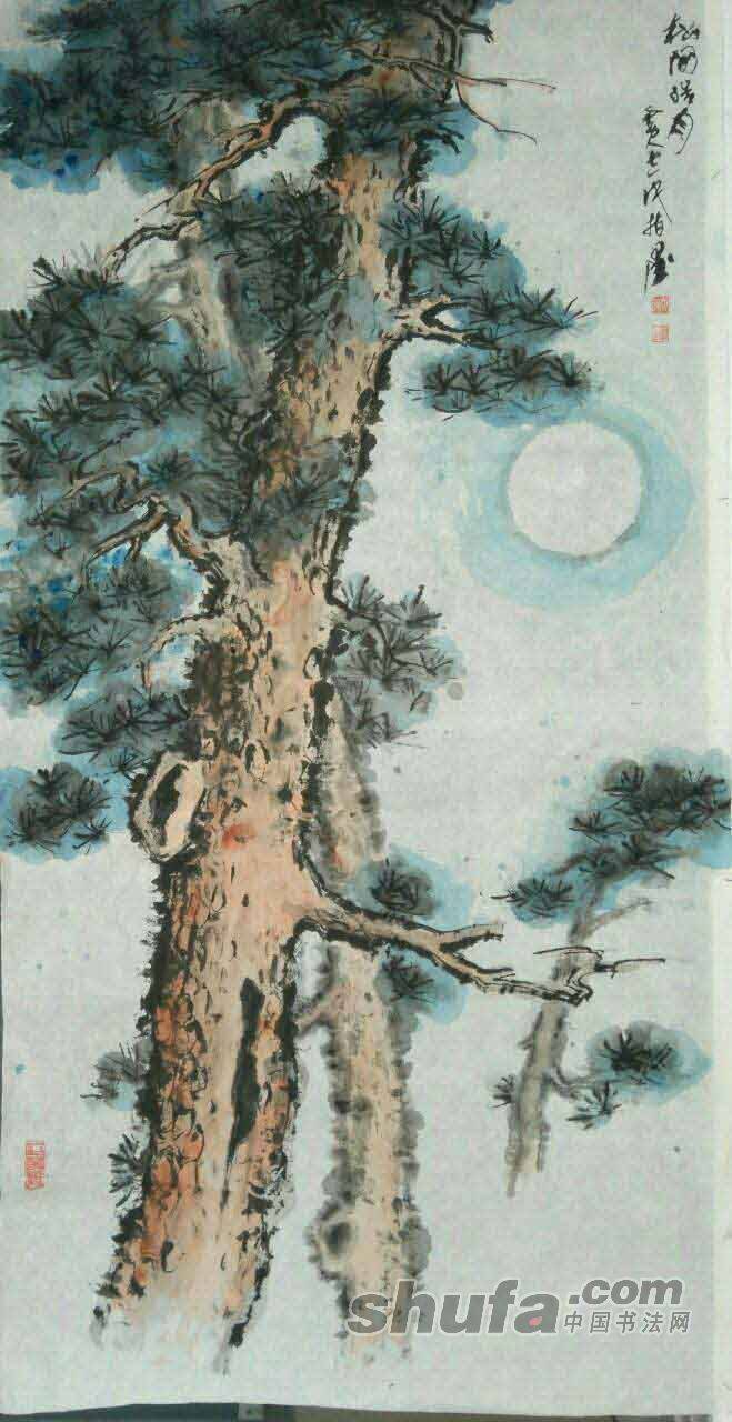 指画《松间皓月》135×68cm