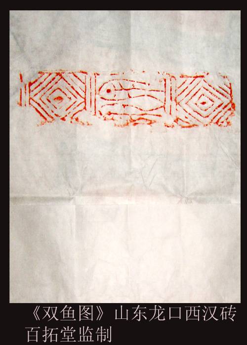 4、《双鱼图》山东龙口西汉砖,13X6X29CM,“龙门山在河东界,每暮春之际,有黄鲤鱼逆流而上,得者便化为龙。”鲤鱼跳龙门 传说鲤鱼跳过龙门即可成龙。寓指一举成名。古代传说黄河鲤鱼跳过龙门,就会变化成龙。《埤雅·释 鱼》:“俗说鱼跃龙门,过而为龙,唯鲤或然。”清李元《蠕范·物体》:“鲤……黄者每岁季春逆流登龙门山,天火自后烧其尾,则化为龙。”唐朝大诗人李白诗:“黄河三尺鲤,本在孟津居,点额不成龙,归来伴凡鱼。” 唐·李白《上韩荆州书》云:一登龙门,则身价十倍。鱼,在我国古代一直视为吉祥物。“富贵有余”、“吉庆有余”、“金玉满堂”、“鱼龙变化”、“年年有余”等。汉代蔡邕《饮马长城窟行》诗云:“客从远方来,遗我双鲤鱼。呼儿烹鲤鱼,中有尺素书。”元·刘庭信《新水令·春恨》云:“几时能够单凤成双,锦鸳作对,鱼水和谐”。
