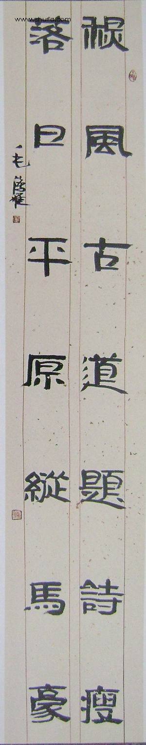 毛鸿雁,女,一九五五年七月生,祖籍河南长垣,毕业与天津工艺美院设计系。自幼受家父毛秉乾先生的熏陶,初入北魏墓志铭,上溯秦汉,继从大王,孙过庭、张旭、米芾、赵之谦,各体兼备,尤工魏行,善大草,深得魏晋风韵。 现为中国书法家协会会员、河南省政协委员、河南省书协妇女工作委员会委员、河南商专客座教授、郑州市妇联常委、郑州市青联常委、郑州市女子书画家协会主席、郑州美术馆专职书画家。