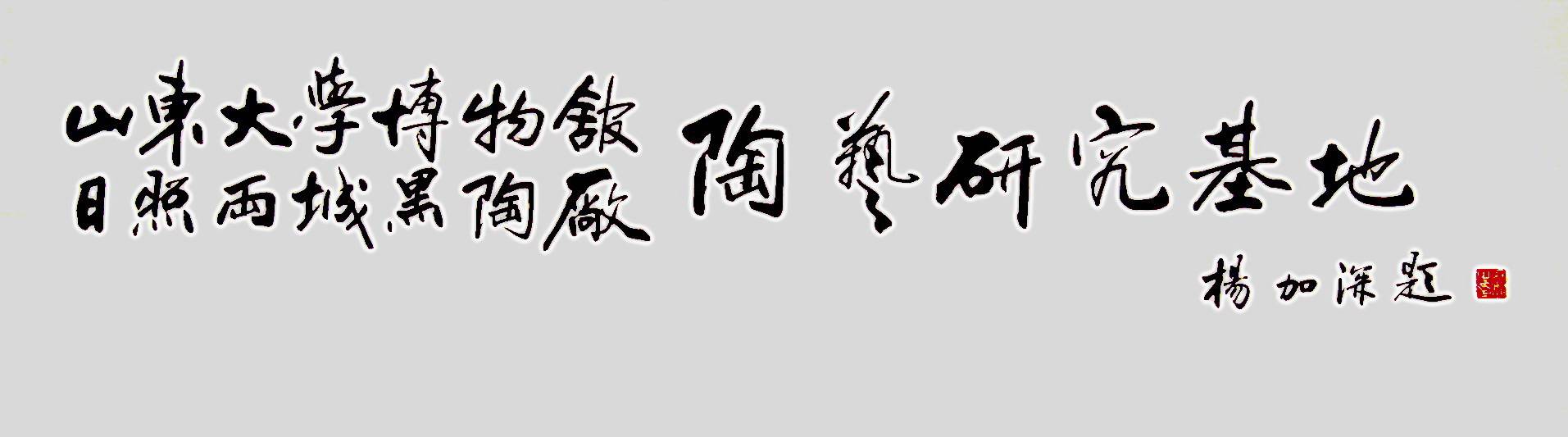 此为山东大学博物馆/日照两城黑陶厂陶艺研究基地所题写。日照两城黑陶厂是对中国古代龙山黑陶文化的基础上发展起来的世界知名的工艺陶厂。