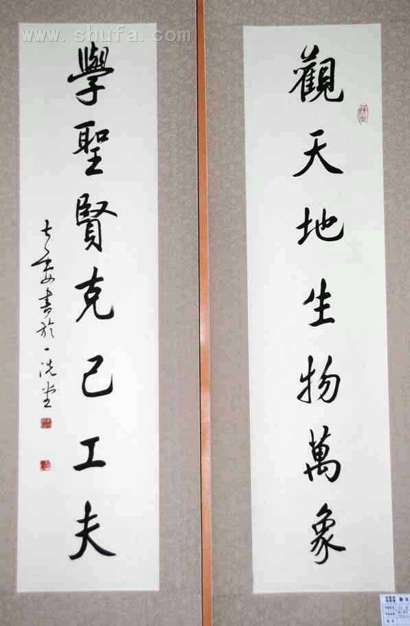 行楷四尺对联 观天 学圣 2007年创作 普通装裱