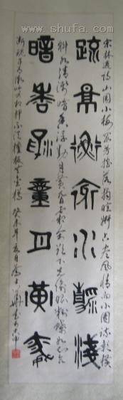 大篆作品,请欣赏。 释文:疏影横斜水清浅,暗香浮动月黄昏。