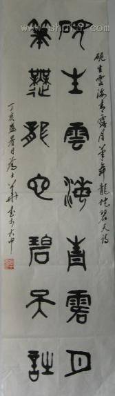 篆书作品。 释文:砚生云海青露月,笔舞龙蛇碧天诗。