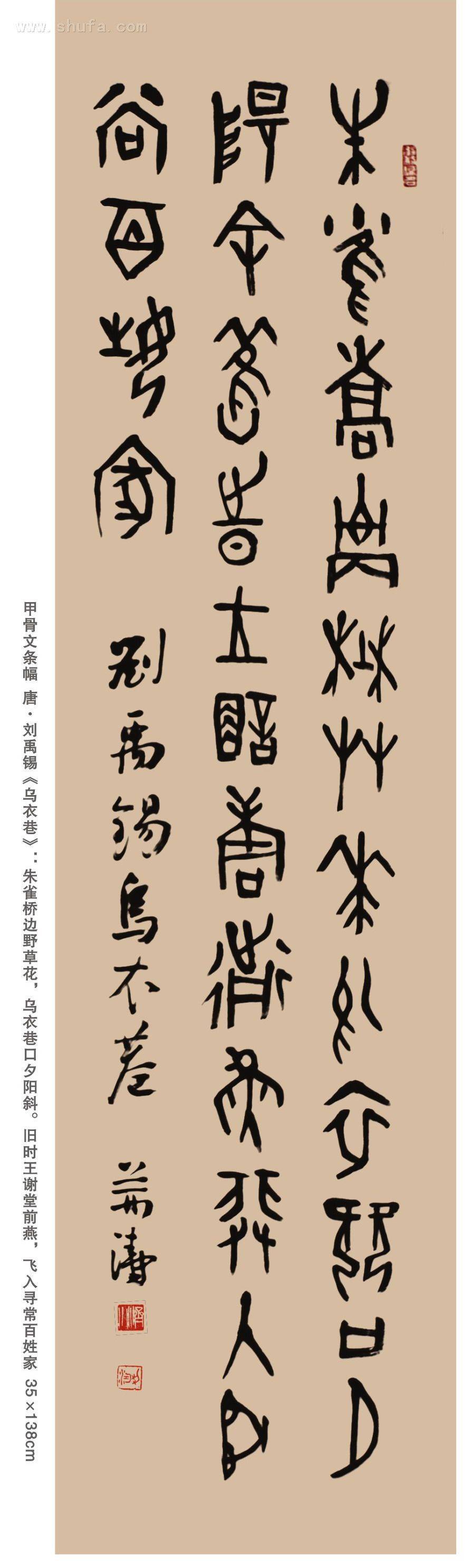 荆涛先生,字济川,别署望杏楼主、颍州布衣。1942年8月生,安徽界首人。中国书协会员、安徽省书协艺术顾问、省楹联学会理事、高级美术师。其书从赵子昂入手,继之上追晋唐,学二王,效鲁公,临《书谱》,仿怀素,仪张颠,读米芾字,摹王铎书,四体皆能,尤长隶书,出入于秦汉碑简帛书,因循古法,师于古人而又不拘泥于古人,融会贯通,从而形成自己兼具古典美和表现力、蓄光敛锐、动静自如的独特的艺术风格。其隶书浑厚凝重,古朴典雅,行草书洒脱灵动、飘逸自在,近年来其章草书和甲骨文书法亦取得不俗成就。