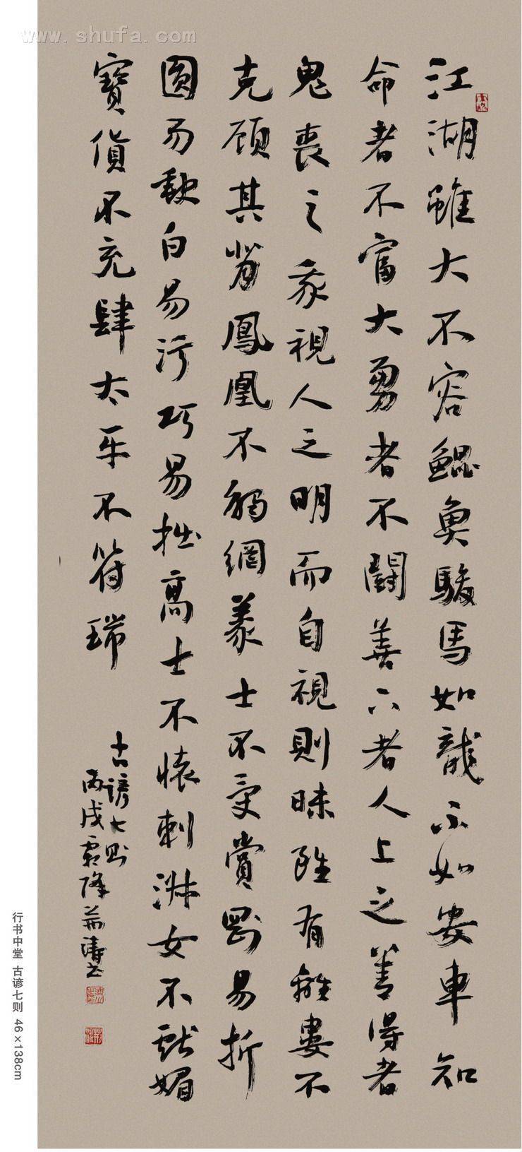 荆涛先生,字济川,别署望杏楼主、颍州布衣。1942年8月生,安徽界首人。中国书协会员、安徽省书协艺术顾问、省楹联学会理事、高级美术师。其书从赵子昂入手,继之上追晋唐,学二王,效鲁公,临《书谱》,仿怀素,仪张颠,读米芾字,摹王铎书,四体皆能,尤长隶书,出入于秦汉碑简帛书,因循古法,师于古人而又不拘泥于古人,融会贯通,从而形成自己兼具古典美和表现力、蓄光敛锐、动静自如的独特的荆氏风格。其隶书浑厚凝重,古朴典雅,行草书洒脱灵动、飘逸自在,近年来其章草书和甲骨文书法亦取得不俗成就。