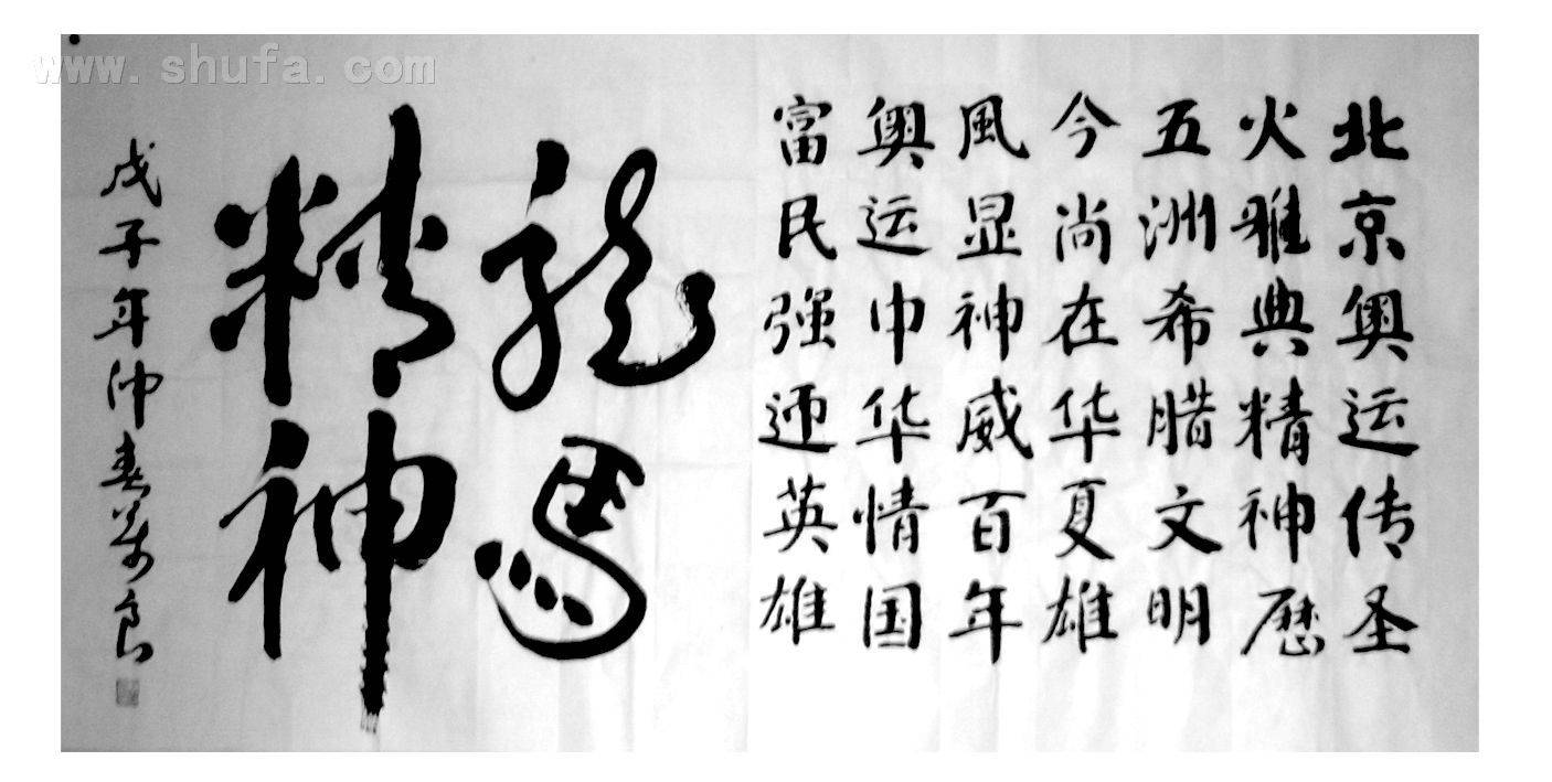 北京奥运传圣火 雅典精神历五洲 希腊文明今尚在 华夏雄风显神威 百年奥运中华情 国富民强迎奥运 龙马 精神