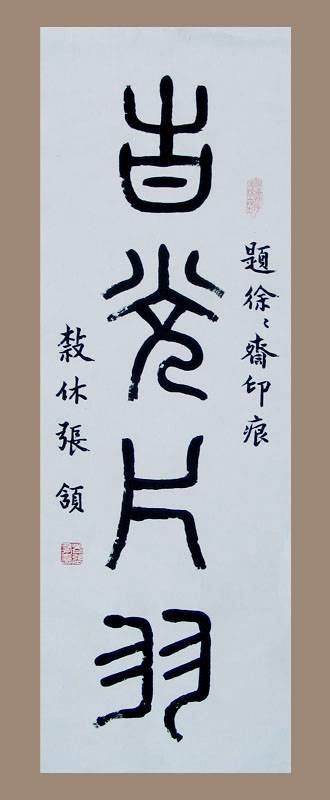 张颔先生金文书轴,题徐徐斋印痕,创作于1994年,时年作者74年岁。