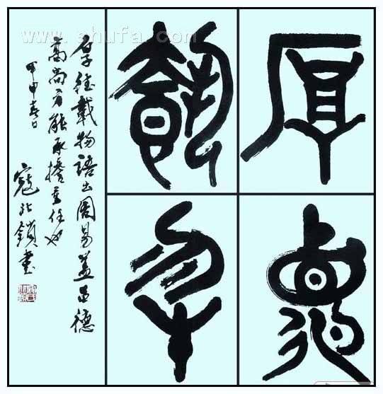 寇北锁,男,1929年12月19日出生,大专学历,长期在洛阳市瀍河区回族区从事教育和地方志编撰工作,多次被评为市区先进教育工作者,省市区级先进工作者,从瀍河区教研室退休。现为河南省书法家协会会员,瀍河区书协名誉主席,老城区书协顾问。 自幼酷爱书法,原习赵体,退休后致力篆书,临研《石鼓文》、《毛公鼎》、《虢季子白盘》等,涉猎小篆兼工行草,作品多次参加省市书展并获奖。1989年参加省群众篆书刻展获奖。1990年参加省群众书展获奖。1993年参加河南省与日本三重县书画摄影展获得奖品及奖金,参加国际佛教书画展获奖。《王铎及其书法艺术》一文参加“王铎书法国际研讨会”。1997年获洛阳市“仲淹杯书画大赛一等奖”曾为《洛阳工人报》、《洛阳消费报》、《洛阳钼业报》、等题写报头。一批文章在《洛阳日报》、《洛阳晚报》、《青少年书法》、《河南日报》、《山西日报》上发表。篆书条幅为“王铎书法馆”收藏并刻石展出。曾为吕不韦墓园、王铎墓园墓碑篆刻。