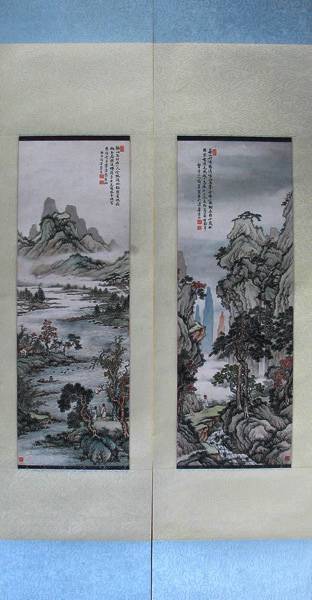 修复后喻莘农《四季山水图》中的春山图与夏山图