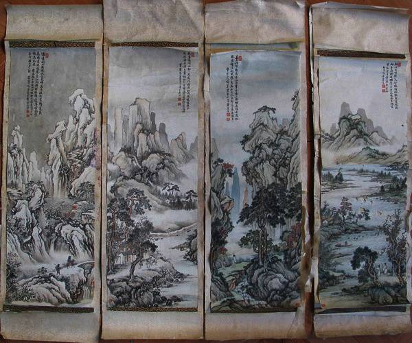 修复前的喻莘农《四季山水图》残图全貌