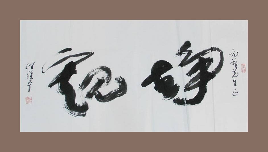 任汉平先生为李元茂书草书“静观”横幅,2006年7月24日创作于海峡两岸(海南)书法家笔会上,时年先生84周岁。