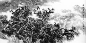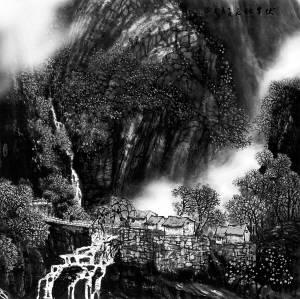石涛言“搜尽奇峰打草稿”,是画好山水画的基础与根本。千山万壑在胸,笔下的山川不会生硬雷同,正所谓“外师造化”。加上自己的“触景生情”、艺术创造,即“内得心源”,作品就更容易触动读者的心弦,引起共鸣。从画展来看,吕先生近年的作品强化了“内得心源”,并运用干湿浓淡的墨色,皴擦渲染着自己心中的灵山秀水、世外桃源。先生在艺术探索中攀上了新的高度。瞧那画中,见不到令人痛心的水土流失,没有让摄影家挠头皮的杂乱电线,山该深时,层峦叠嶂一望无涯;树应密时,郁郁葱葱凉意袭人;水如古琴漫弹,轻重缓急,流出飞瀑溪潭;云似横笛轻吹,悠扬舒卷,神定气闲,画中万物都是那么顺眼入心。《伏牛秋色》中,用虚化了的湿画法强调“空山新雨后”的迷蒙与清新,让我直欲走进画中,站在飞架溪涧的石桥上,畅快地扩胸做深呼吸。那洁白蒸腾的山岚,隐藏着多少美景?