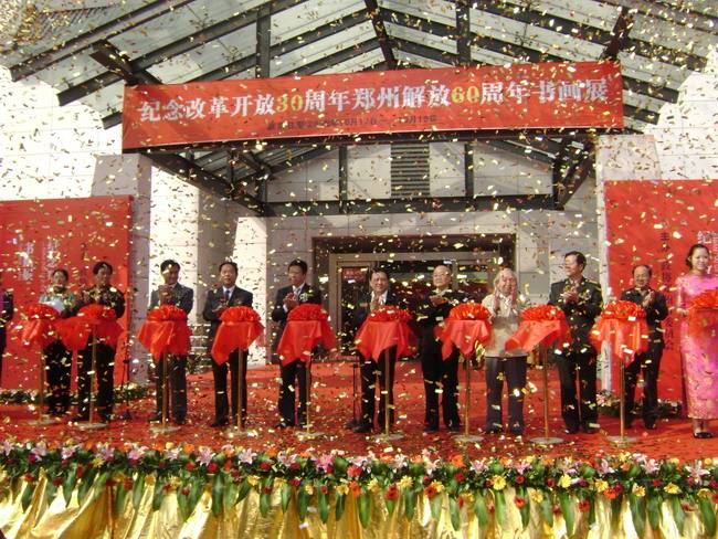 昨日上午,由市政协主办的“纪念改革开放30周年郑州解放60周年书画展”在商都艺术馆开展。省市领导靳绥东、李秀奇、薛云伟、岳喜忠、王薇、朱专兴出席画展开幕式。