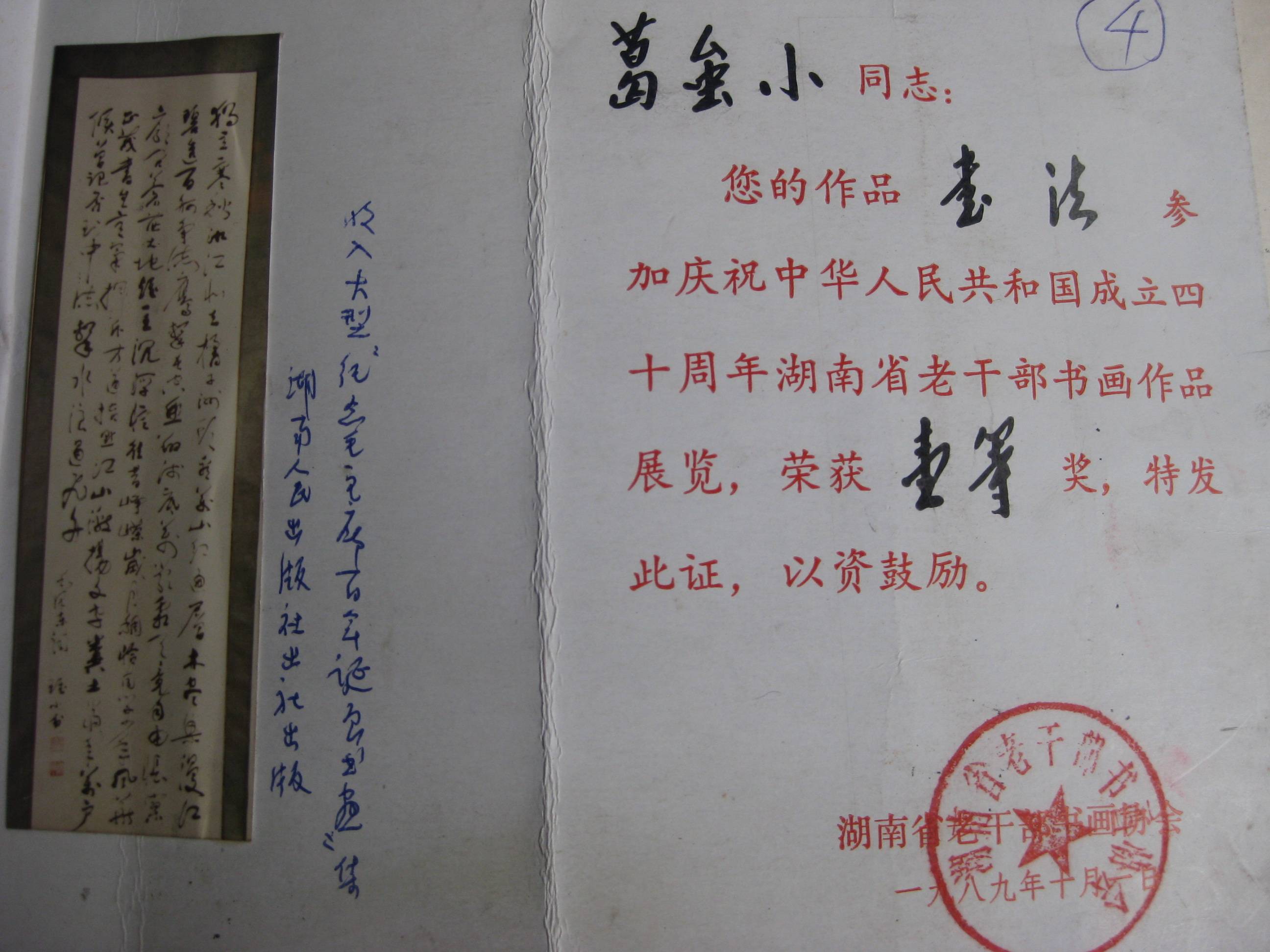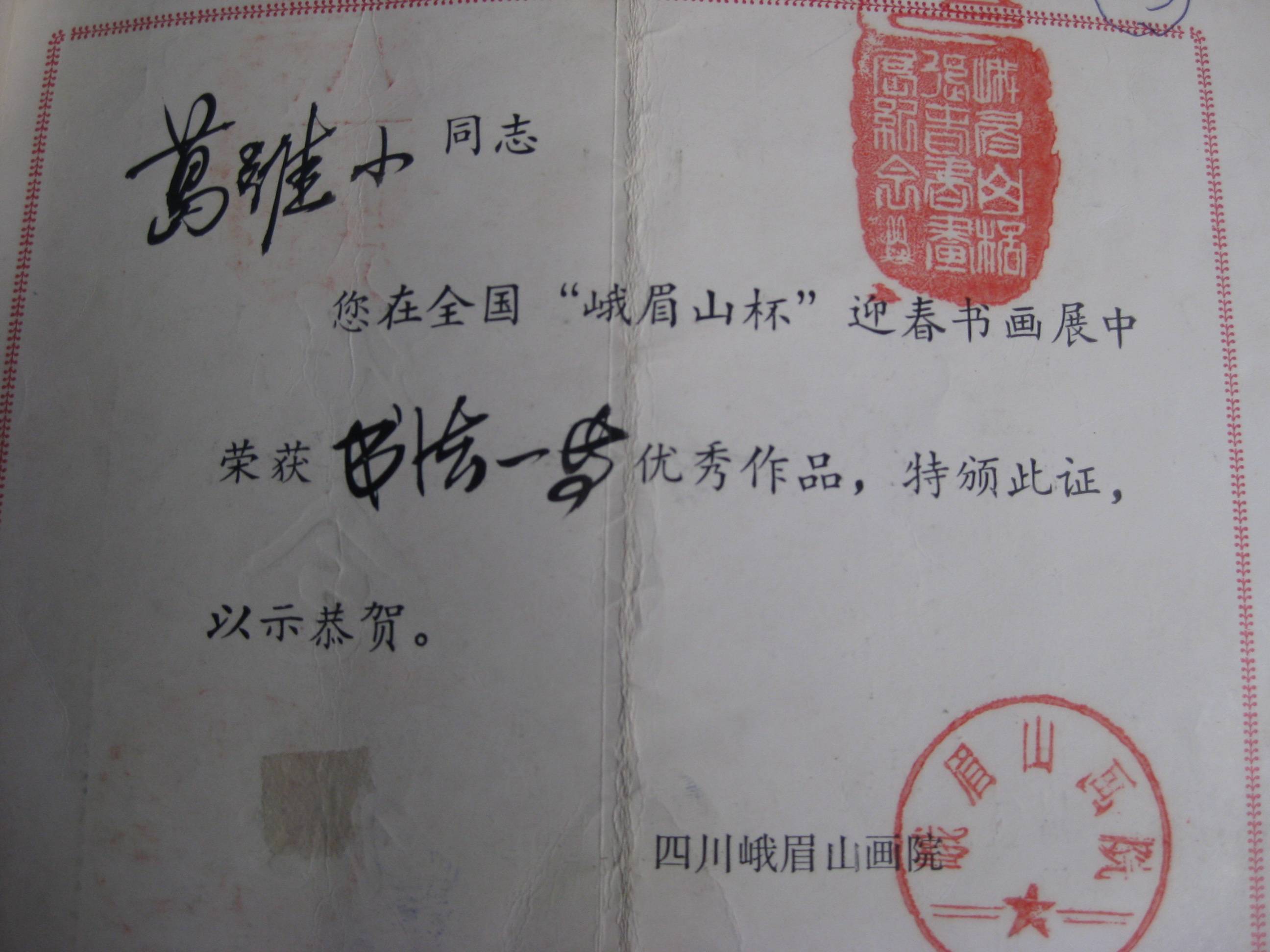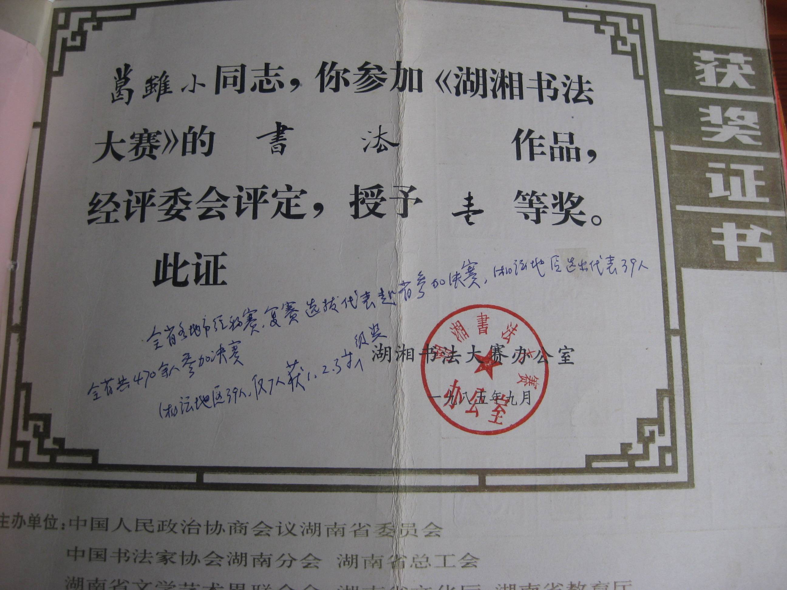葛虽小先生书法作品部份获奖证书