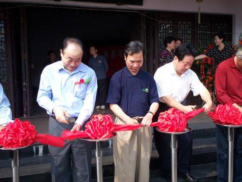 南昌市人大主任李豆罗(右)、江西省政府原秘书长黄飚(中)、洛阳市人大原主任刘典立(左)等领导为开幕式剪裁