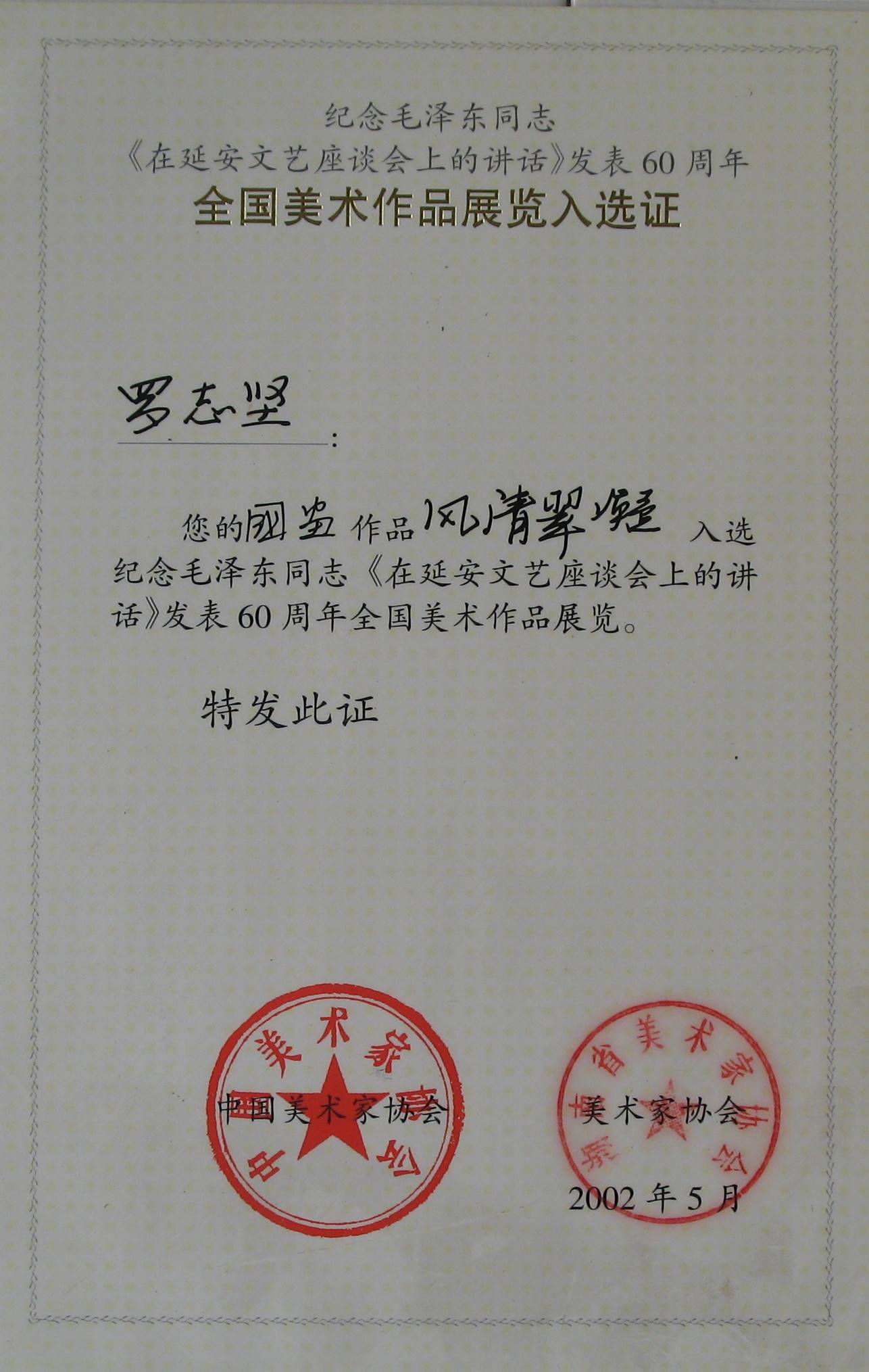 罗志坚作品获奖证书(六)