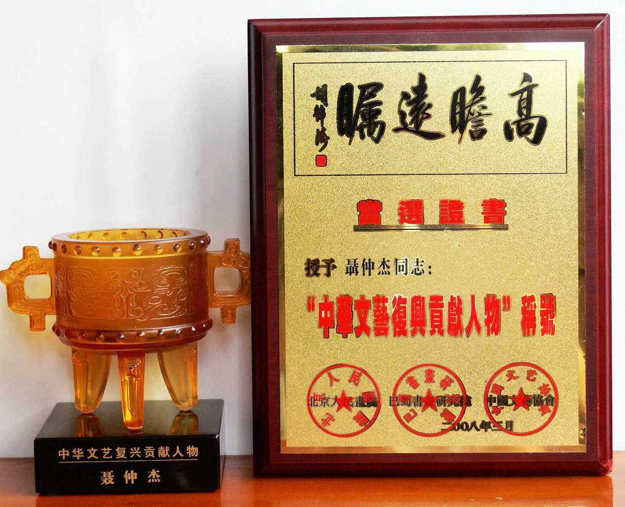 【聂受立报导】书画名家聂仲杰,被北京人民画院、巴蜀书画研究院、中国文艺协会联合授予“中华文艺复兴贡献人物”称号。这是他2008年来继众多奖项之后获得的又一重量级奖项。