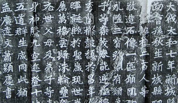 “龙门二十品”指选自龙门石窟中北魏时期的二十方造像题记,是魏碑书法的代表。魏碑上承汉隶,下开唐楷,兼有隶楷两体之神韵。