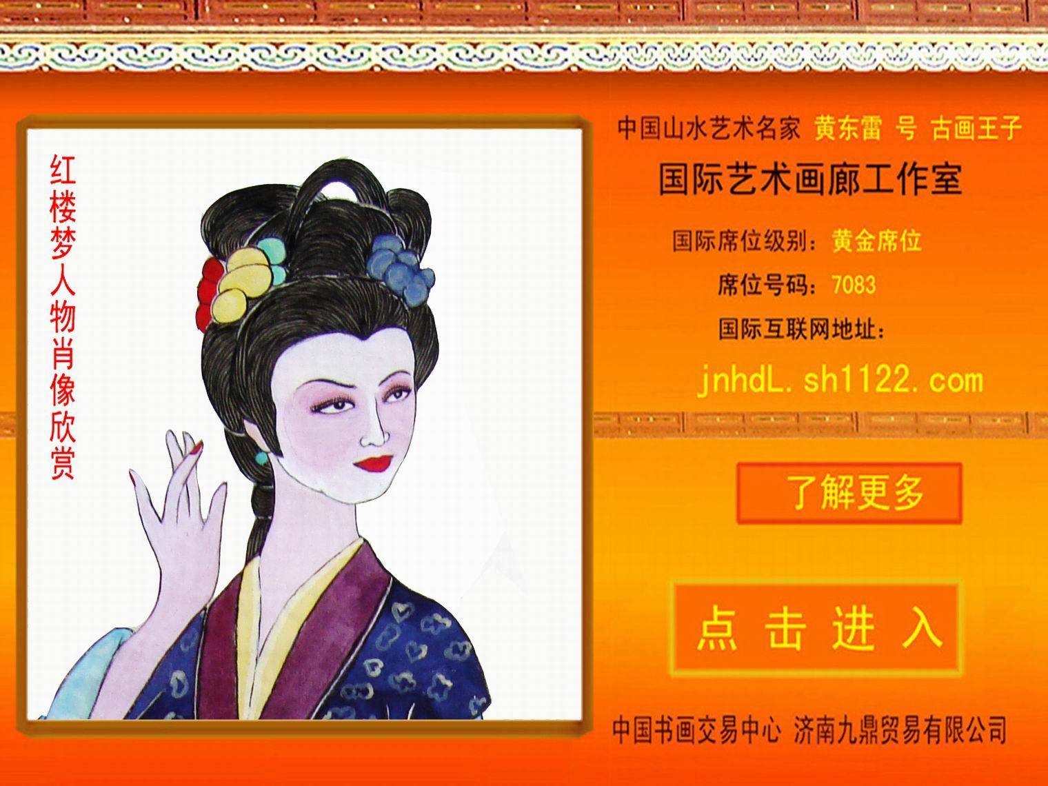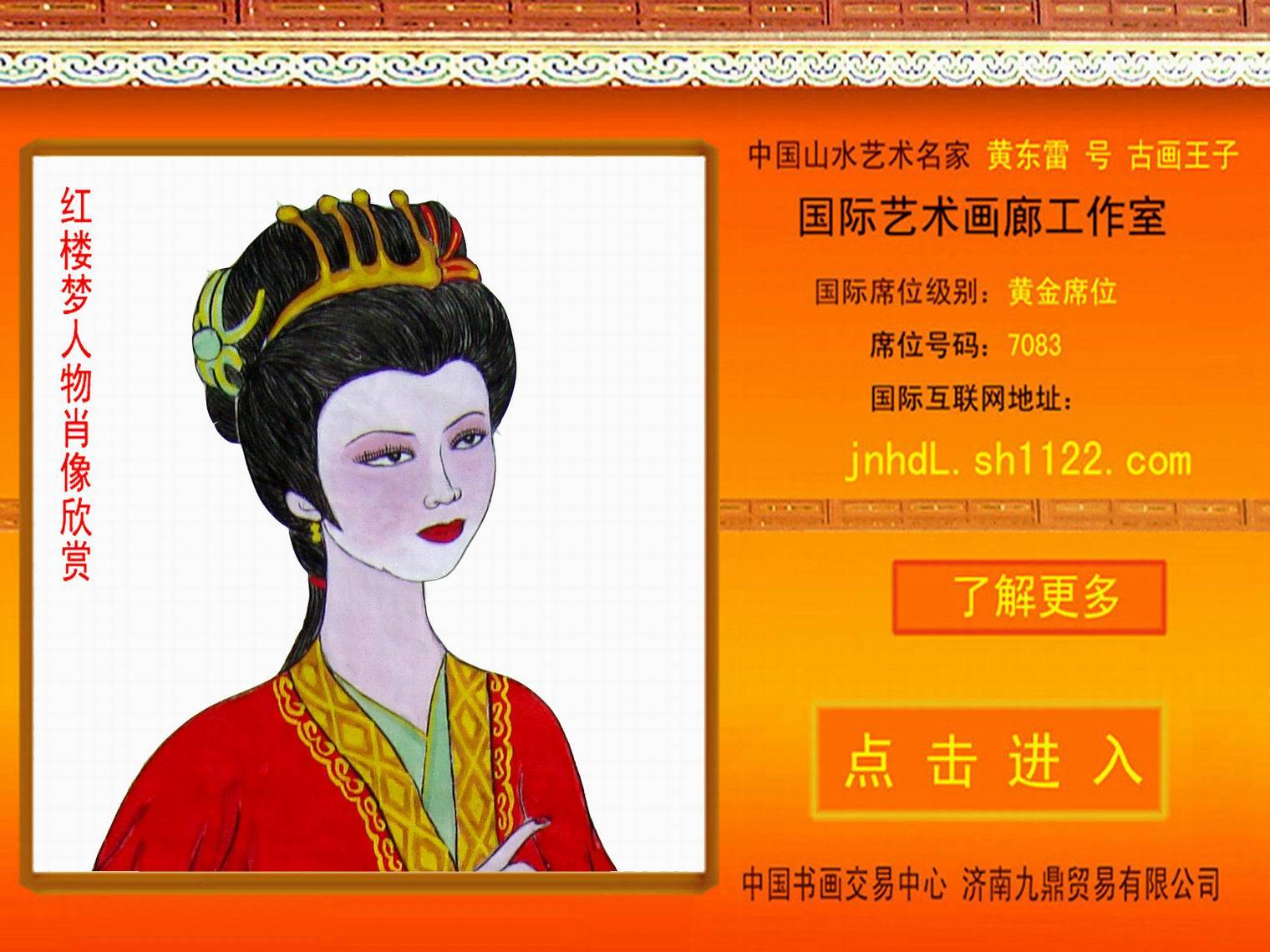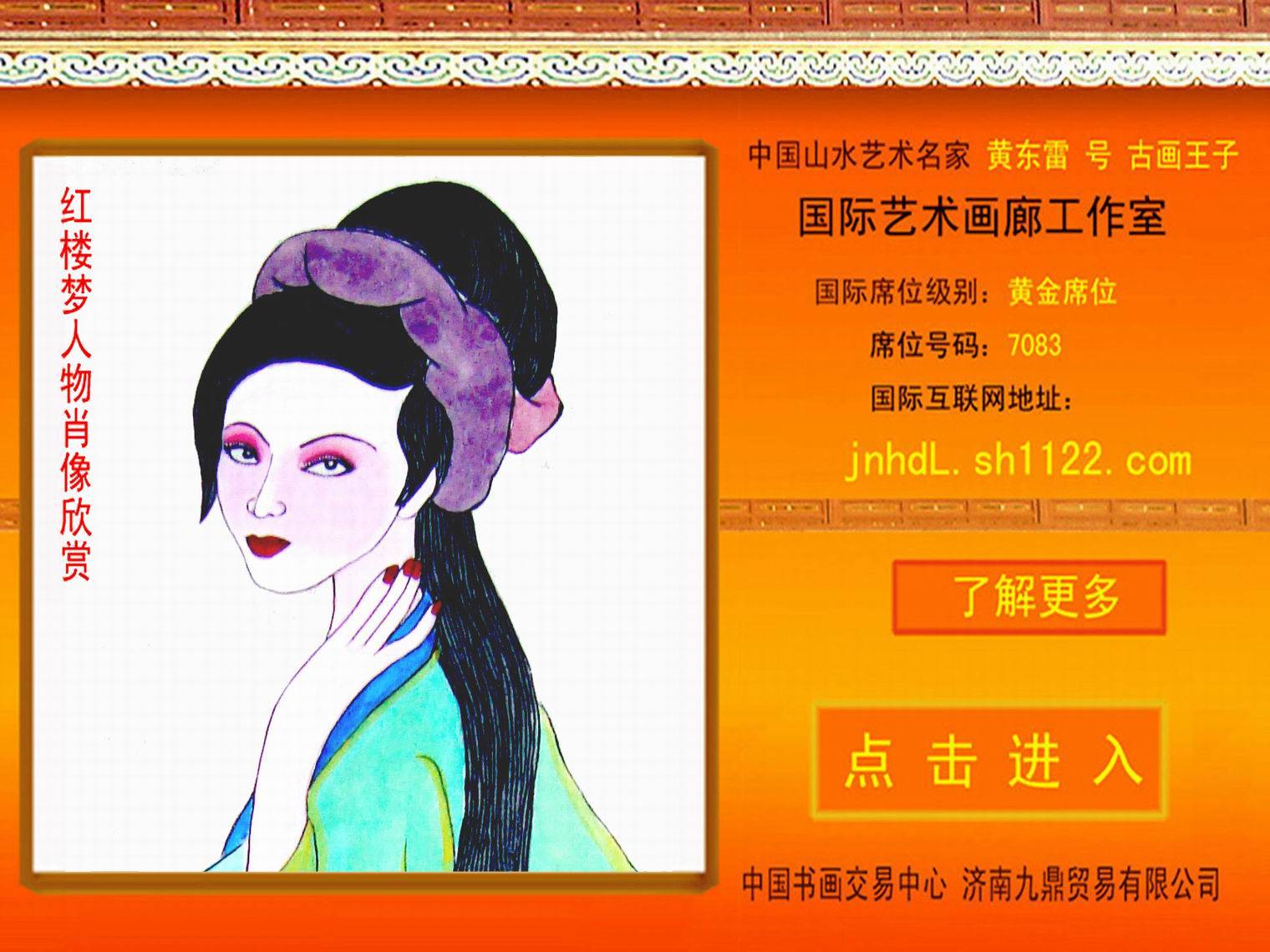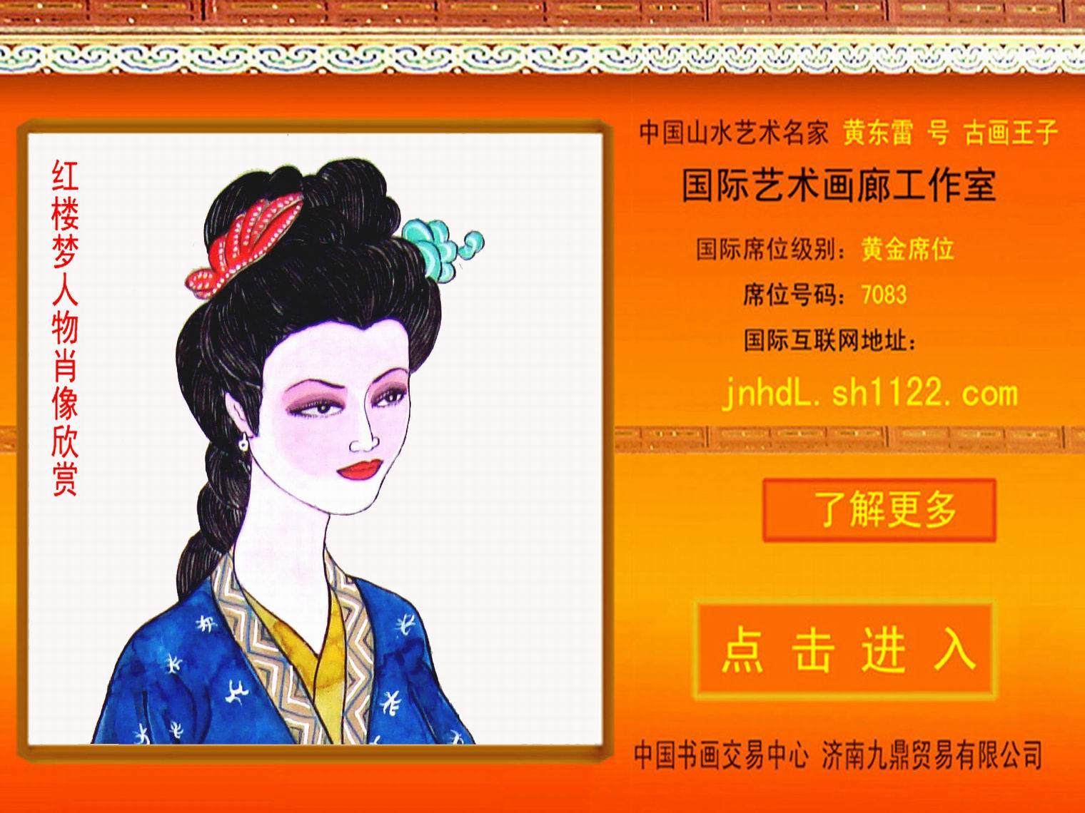 红楼梦人物标准像。所谓“标准”,指作者阅读了原著中大量有关人物外貌特征的描写,再融合人物性格和当时服饰、发型等特点精心设计绘制完成,由于作者黄东雷学习及研究中国古画近三十年,有着超强的绘画和书法功力,本次大作应是最接近《红楼梦》原作的描述,故称“红楼梦人物标准像”。