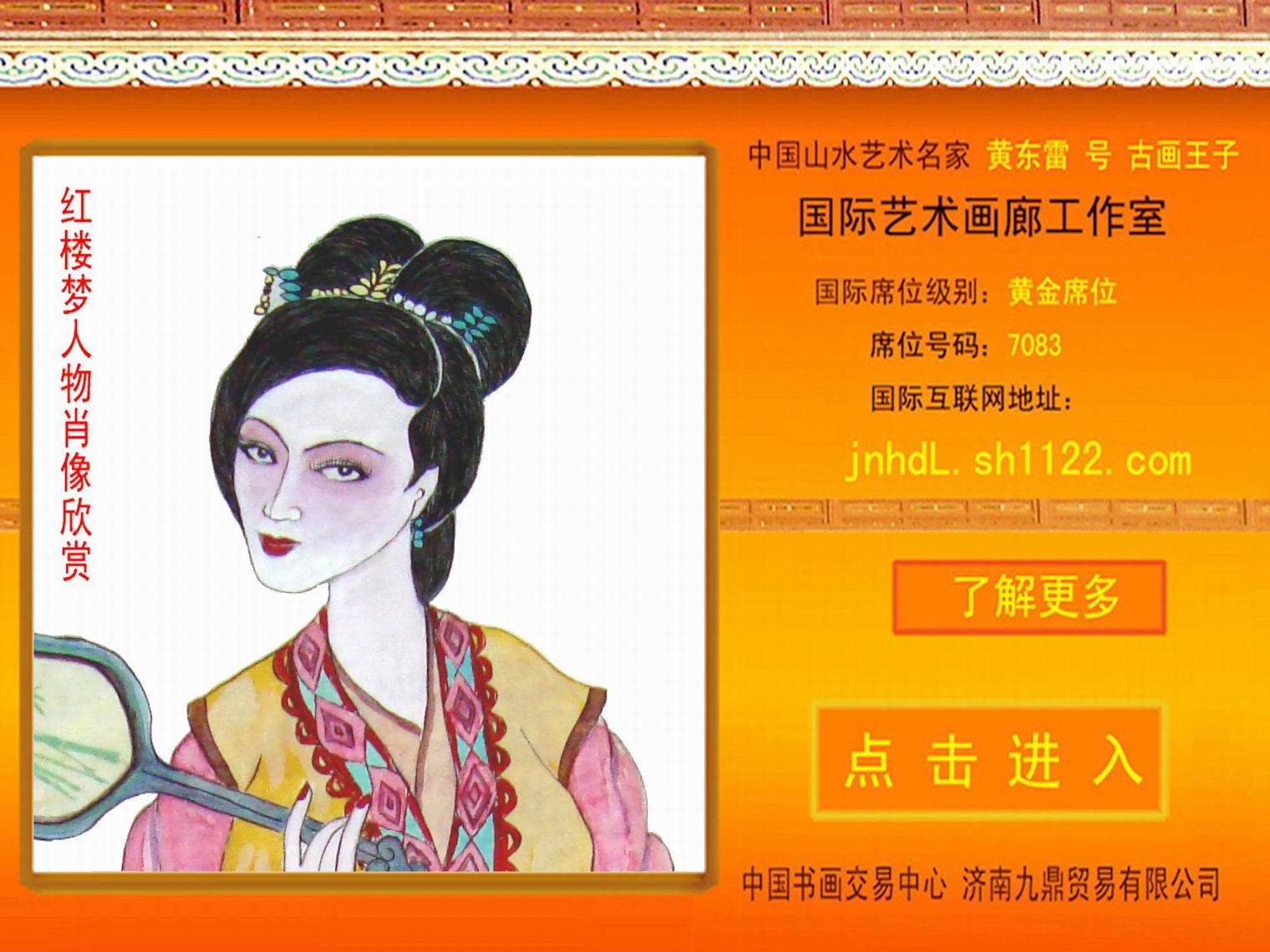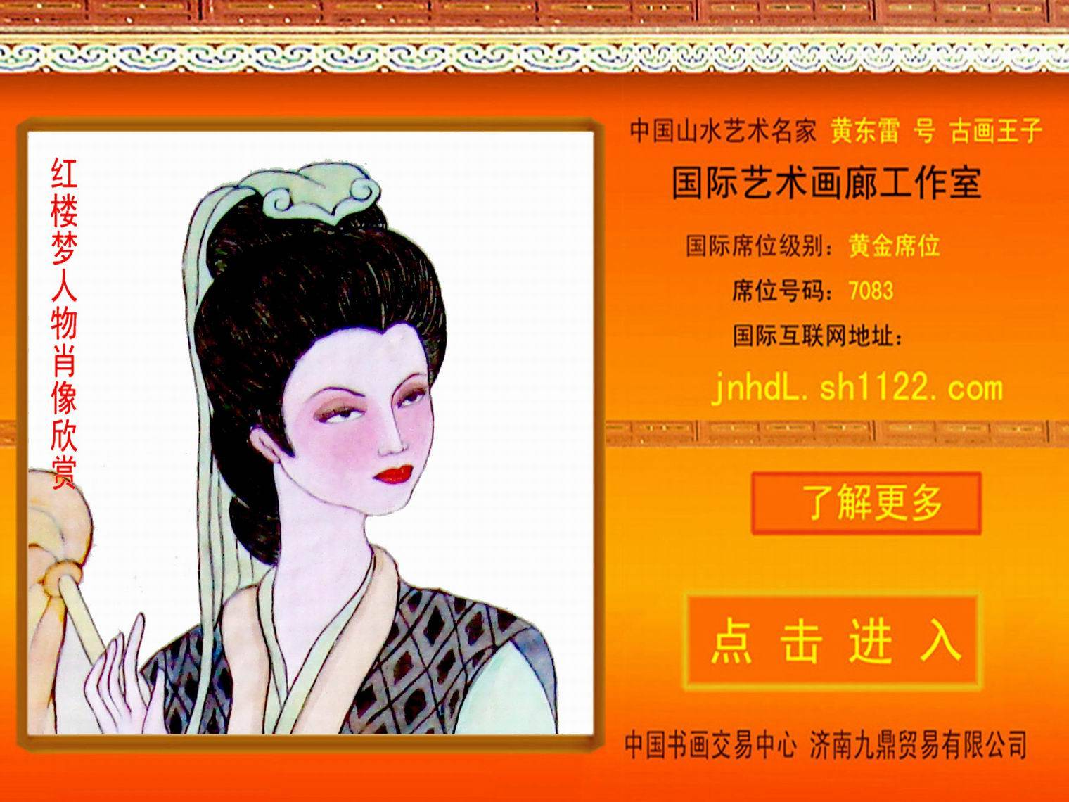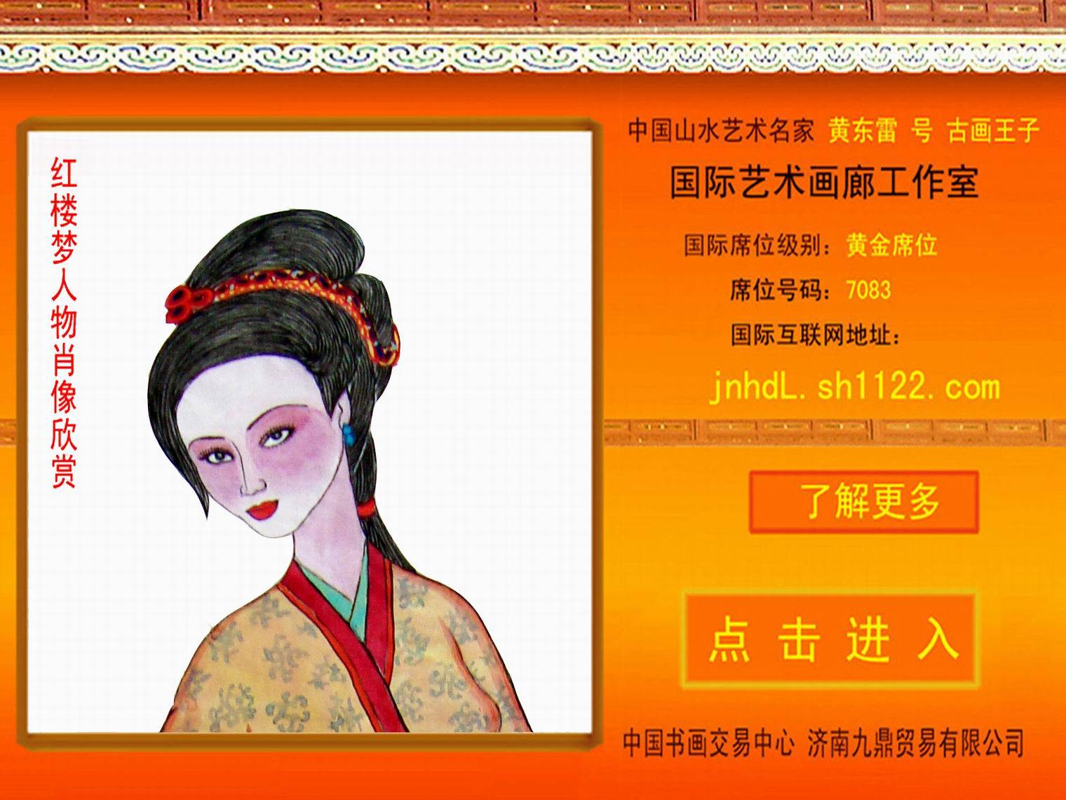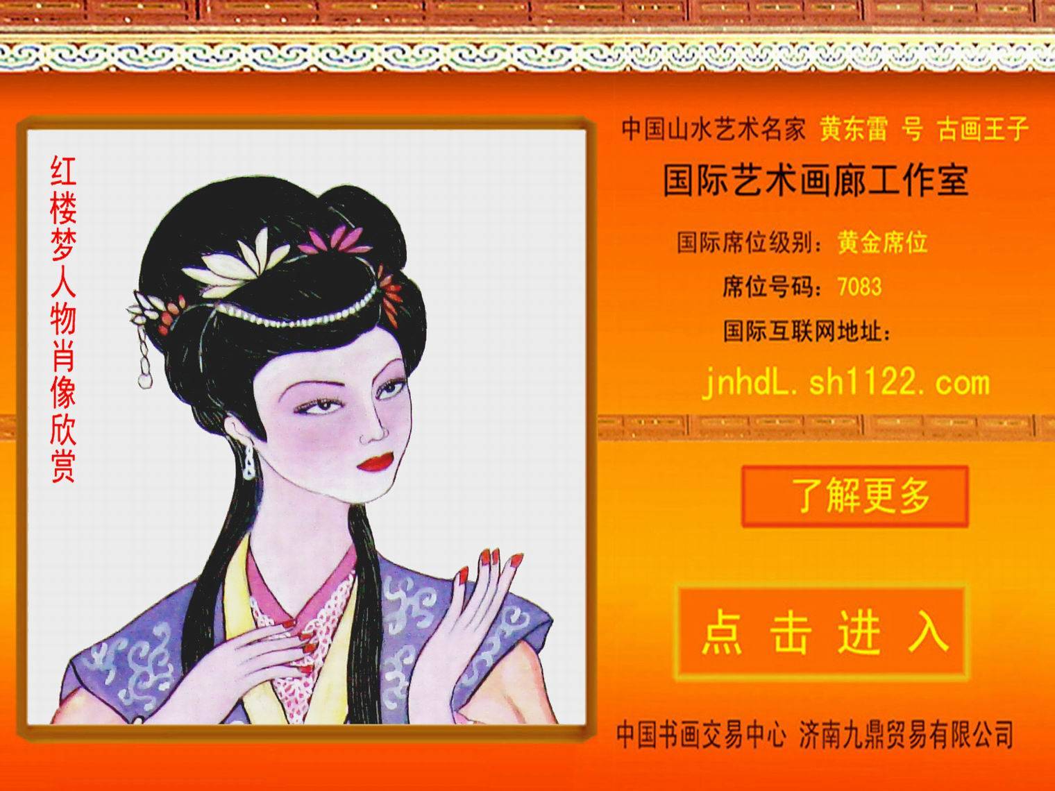 红楼梦人物标准像。所谓“标准”,指作者阅读了原著中大量有关人物外貌特征的描写,再融合人物性格和当时服饰、发型等特点精心设计绘制完成,由于作者黄东雷学习及研究中国古画近三十年,有着超强的绘画和书法功力,本次大作应是最接近《红楼梦》原作的描述,故称“红楼梦人物标准像”。