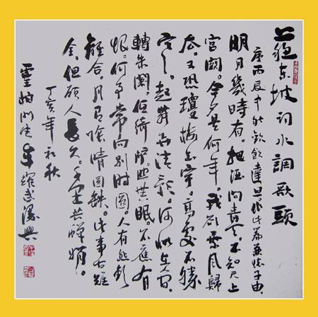 行书斗方苏轼词《水调歌头》