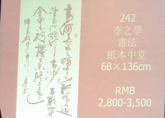 2008年1月13日,在昆山2008迎春书画拍卖会上,李之学行草书法作品《王昌龄诗从军行》, 以5600元拍卖成交。