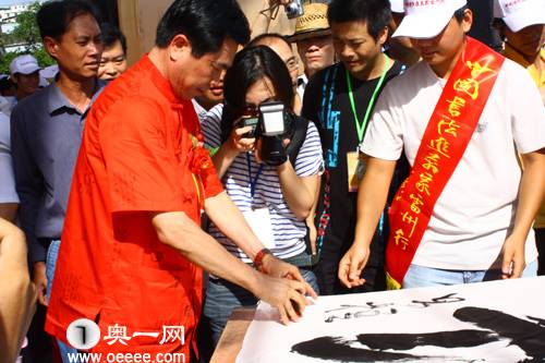 当日上午,雷州市雷湖文化广场人头攒动,翰墨飘香,由中国书法家协会主办的“中国书法进万家雷州行——百名书法家走进国家历史文化名城雷州公益活动”在这里举行。中国书法家协会副主席吴东民,广东省书法家常务副主席纪光明和广东省书法家协会会员、湛江市委常委、雷州市委书记李昌梧等百名当代书法大家现场泼墨献艺,在现场120分钟的表演中,书法家们各显神通,为雷州献下了珍贵的墨宝,现场围观群众水泄不通,啧啧赞叹。