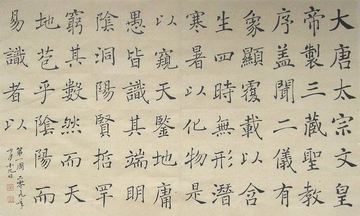 临习褚遂良《雁塔圣教序》,每周70字,得朋友们的指点,用毛边纸。20090719