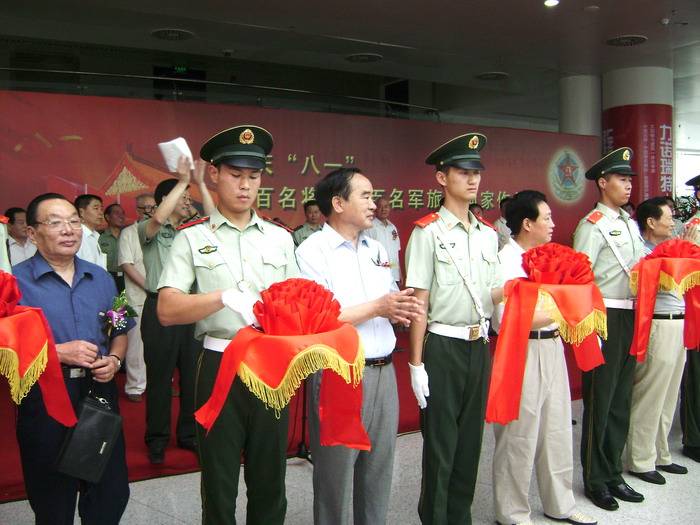 开幕式在河南省美术馆举行,全国政协文史学习委员会副主任、省政协十届原主席范钦臣,省委常委、省军区政委颜纪雄少将,省人大常委会副主任王菊梅、张程峰,省政协常务副主席王训智、省政协副主席袁祖亮,省人大常委会原副主任李志斌、李中央,省政协原常务副主席郭国三、张洪华,省政协原副主席杨光喜,省军区原司令朱超少将、省军区原参谋长王征成、解放军信息工程大学原政委潘洪亮少将、省军区原副司令员杨明海、王太顺少将、武警河南总队原总队长张天珠、曹云忠少将、省军区政治部副主任刘春晖、省纪委副书记、监察厅厅长王流章、报业集团总编辑常法武、武警河南总队副总队长曲杰以及省有关厅局领导,书画界专家,省市新闻媒体领导和新闻工作者,来自部队与地方的嘉宾近千人参加了开幕式。
