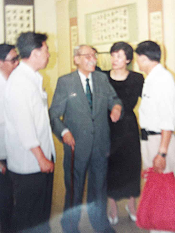 董寿平与姚奠中女儿在一起。(1993年摄于中国美术馆)