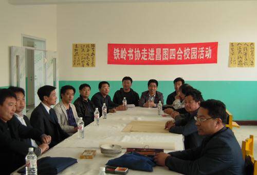 2010年5月12日,铁岭市书协在主席王荐的带领下,走进昌图县四合中学校园。市书协副主席于景頫;市书协副主席、昌图县书协主席郭岩;市书协秘书长方立文;市书协副秘书长、昌图县书协副主席兼秘书长张国清;铁岭市集兰斋画廊经理高振国以及市文联画家10余人参加了活动。