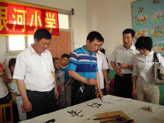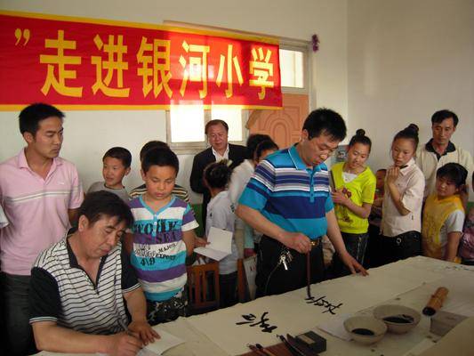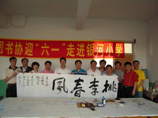 5月31日, 在六. 一儿童节即将来之际, 昌图县书协组织部分书法工作者在主席郭岩的带领下, 来到昌图镇银河小学校园, 受到学校师生的热烈欢迎.