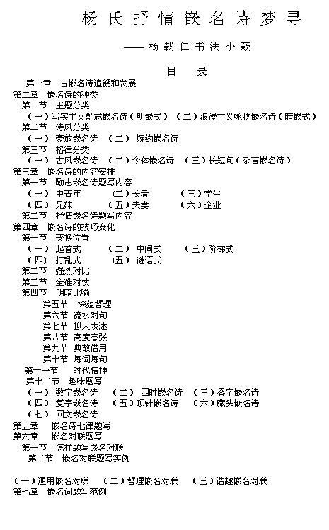 杨 氏 抒 情 嵌 名 诗 梦 寻