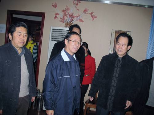 与原甘肃省政府秘书长甘肃省高院院长郝红涛先生在笔会上介绍作品(2007.兰州)