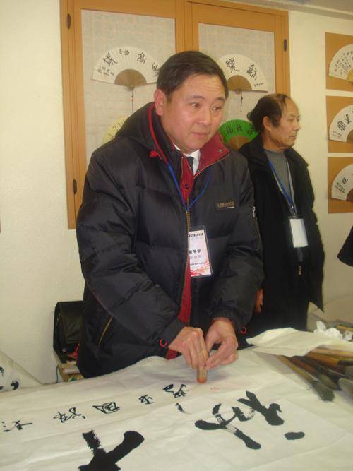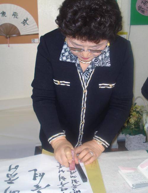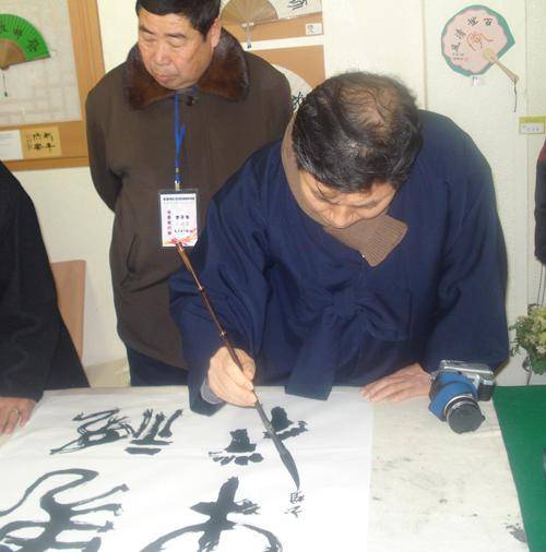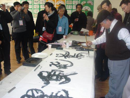 16.2009年1月13日韩国书法家在首尔中国文化中心现场笔会表演。