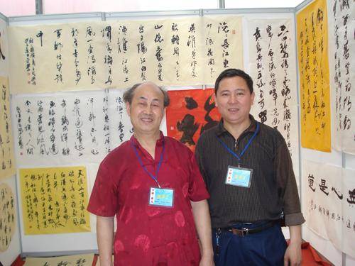 19.2008年4月12日黄平学先生参加中国第二届山东(寿光)书画艺术品博览会与成都书法家在自已的展位前留影。
