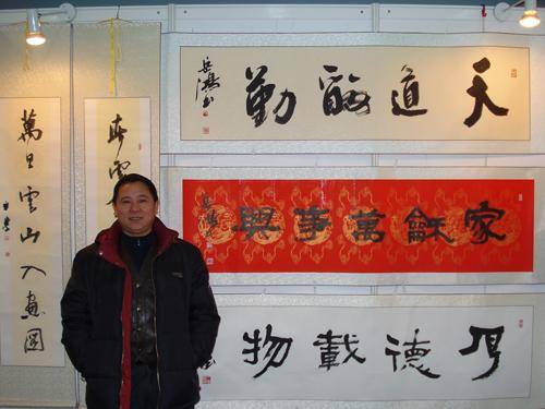 21.2009年11月25日黄平学先生在北京中国图书馆参加精品生活书画展,在自己展位前留影。