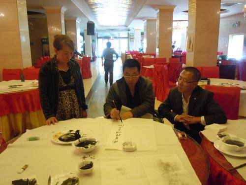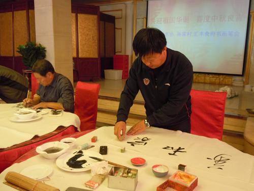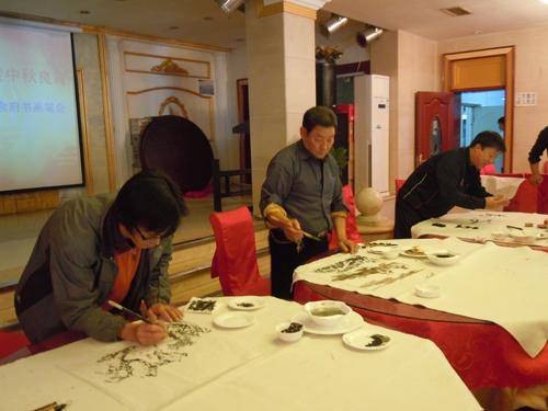 9月22日,昌图县书协、画家村、汇丰食府为庆祝共和国61周年华诞、喜度中秋佳节,联合举办了共迎祖國华诞,喜度中秋良宵书画笔会。铁岭市书协副主席、昌图县书协主席郭岩、市书协副秘书长、昌图县书协副主席(兼秘书长)张国清、副秘书长关兴;画家村村长王殿辰、画家刘义、邱天时;汇丰食府董事长单振宇及员工参加了活动。