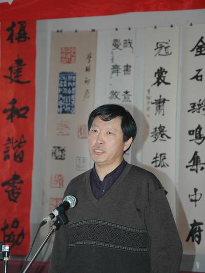 市书协主席李根茂在发言中对宣化书法家协会一年来开展的工作和所取得的成绩给予了充分肯定,并鼓励宣化书法家协会会员要继续发扬兰亭精神,提高书艺,多出精品。区委副书记、区纪检委书记王世光在讲话中要求宣化书法家 协会要进一步完善工作机制,激发会员创作热情,努力冲击大赛奖项,用手中之笔书写我区人民率先跨越的豪情,描绘古城美好的蓝图,在“文化兴区”战略中继续发挥积极作用。