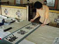 二零零六年五月五日,全国著名书法家、湖南省著名书法协会会长陈文明教授在边城大酒店烟雨凤凰餐厅现场书法写作!