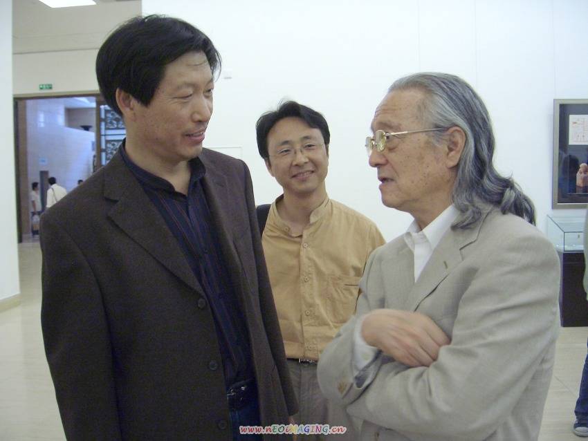 李根茂主席(左)、丁建强(中)与著名书法家张荣庆先生交谈