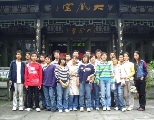 大千纪念馆一行,互相交流,合影留念.这里环境优美,地处内江市东兴区沱江边.绿树掩映,鸟语花香.四合院式的房子.馆内有很多大千的作品,书法,国画,美不胜收