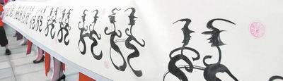 记者看到,为了将这幅长卷展开,30余位工作人员费尽周折,只伸展几百米。“完全打开都这么难,创作过程的艰难可想而知了。”一位目睹过此长卷的工作人员说。许多观众表示,这种大写意的“龙”字是第一次见,好似两个人在舞蹈,却不失龙的遒劲。