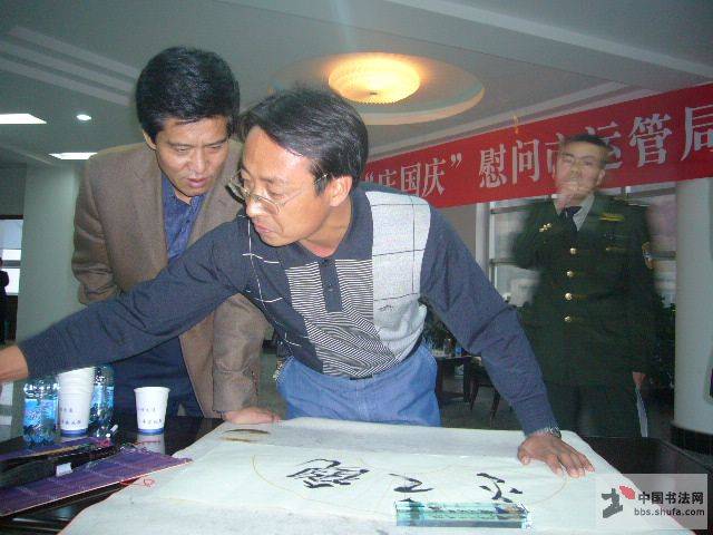 市运管局局长郭俊清,市交通局纪检书蒋继忠的陪同下,中国国际文艺家协会理事、西藏书协会员、市纪委副书记魏世明,甘肃省美协会员何珏、中书协会员牛忠、杨宝泉、张文颖,甘肃省书协会员陈志强当场挥毫泼墨