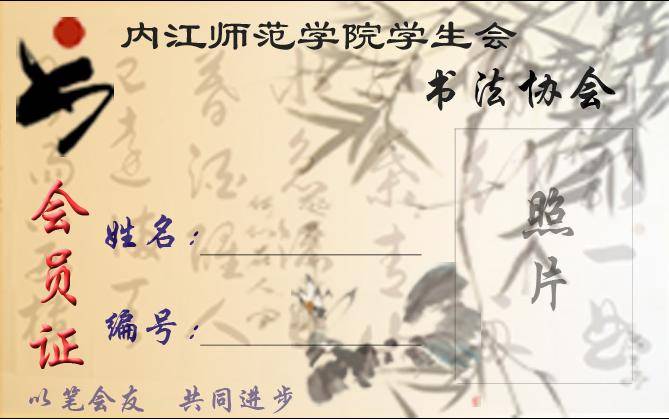 4 照片 用红色为背景,放在右下方,正和左边的会徽"书"字和"会员证"相呼应 使整副画面完美和谐.
