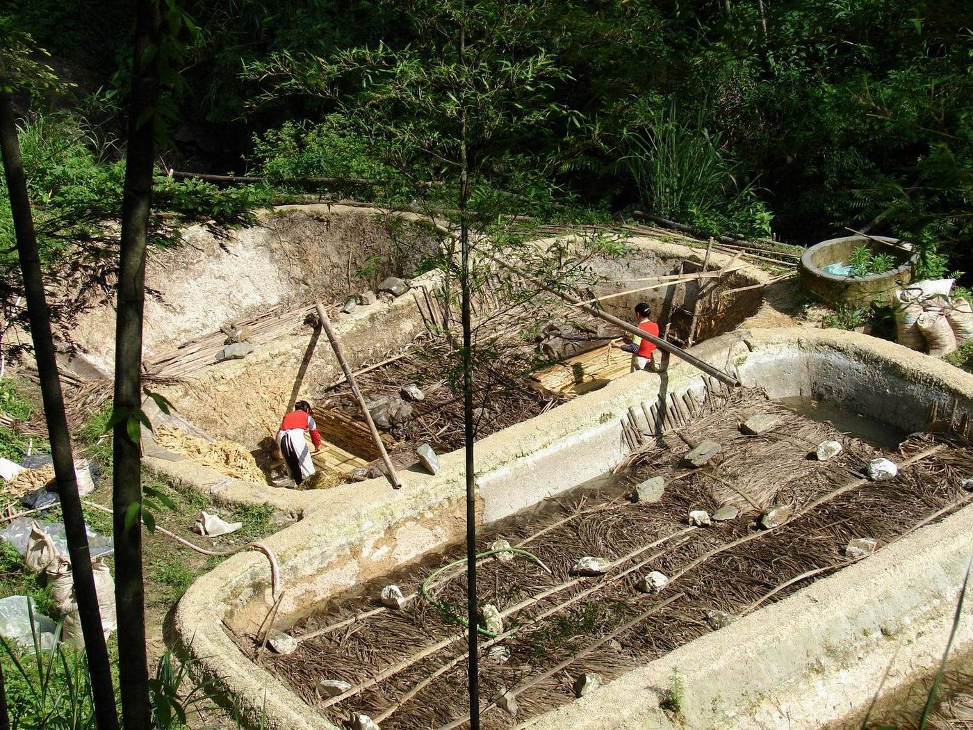 山涧边,工人师傅正在起竹麻。竹麻一定要用纯净的山泉山浸泡、漂洗