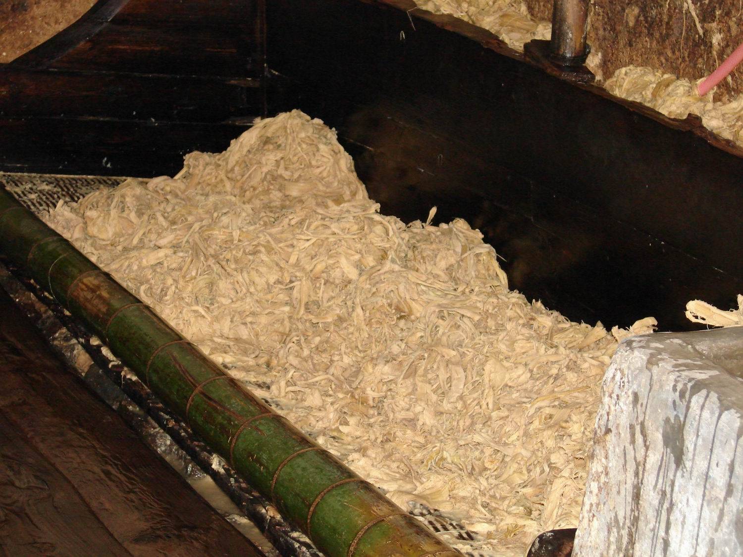 起好的竹麻就放在这里用脚踩,踩这可是一门硬功夫