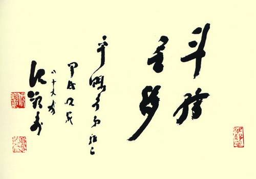 感悟传统气质的沈式笔墨是历久弥新的,这一画那一笔所敷衍的浑雄气象之感染力与辐射力是力求广大的。为此,弘既往之风规,导将来之器识,成了先生数十个春秋一心一意的事业。无论青少年浸淫中西文化中的考量,还是中青年学聚问辩而足迹半天下的认定,乃至中年伊始的鬻字为生的抉择,都天造地设地让他一步一脚印地延伸着职业书法家的行程。明知此行之艰之寂,但他义无反顾,全为这一件事历经筚路蓝缕的探索,在不间断的笔墨感悟中寻找到了生命的支点,在心象与境象的契合里呈现出沉雄。综而察之,其经由积淀所俯瞰人生的翰墨生涯,既属个人,亦乃时代使然。故而,先生暮年,当人询及何以能够将书法视为精神家园坚守时,总是这般回答:“兴趣与天已。”而问及坚守这个家园之心境则只说一个字“静”。其斋名“惟静室”。